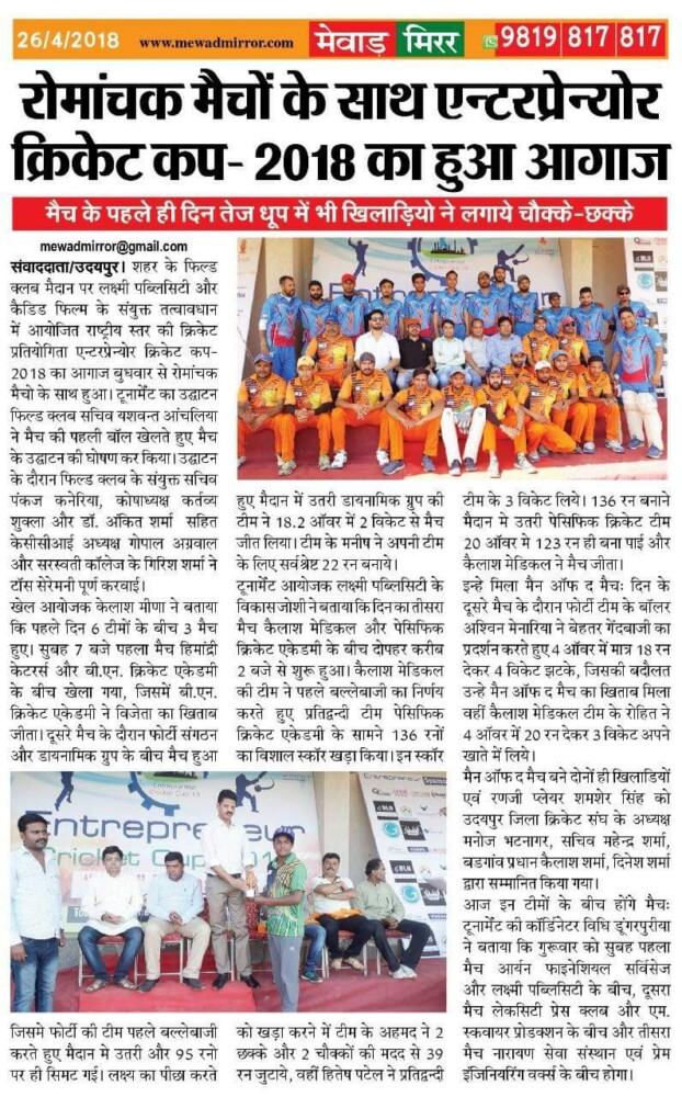 He is the calibr behind global publication PR company and the famous book ” Shakhsiyatey The Pride of mewar” .